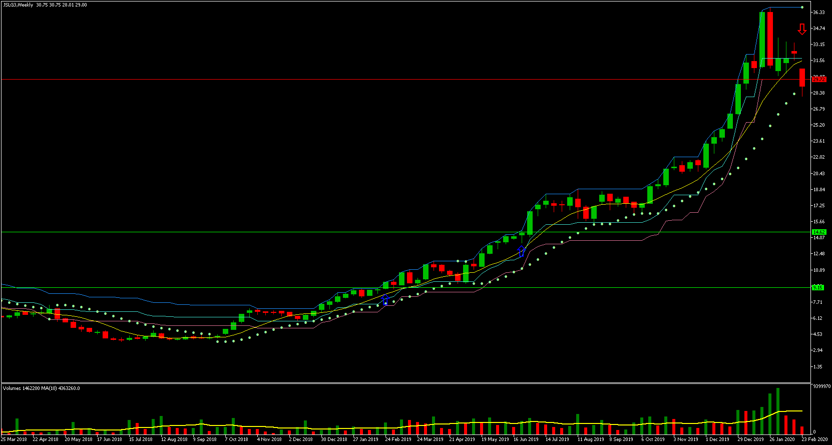 | 25/02/2019 | JSLG3 | 9,15 | Rompimento Semanal | 247,21% | 29,72 |