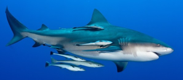 Rêmoras são peixes amigos dos tubarões, que por consequência não são devorados por eles. Os peixes rêmoras nadam bem próximos aos tubarões e quando o tubarão pega alguma presa para comer, eles comem junto, em menor volume naturalmente.