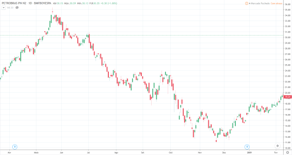 Vejam o gráfico da PETR4 abaixo: