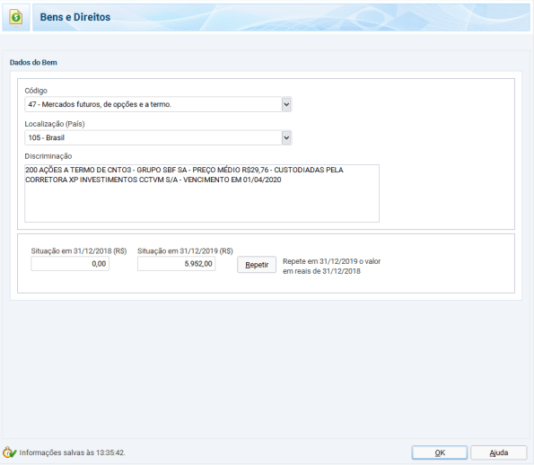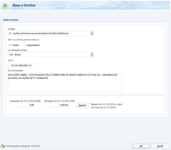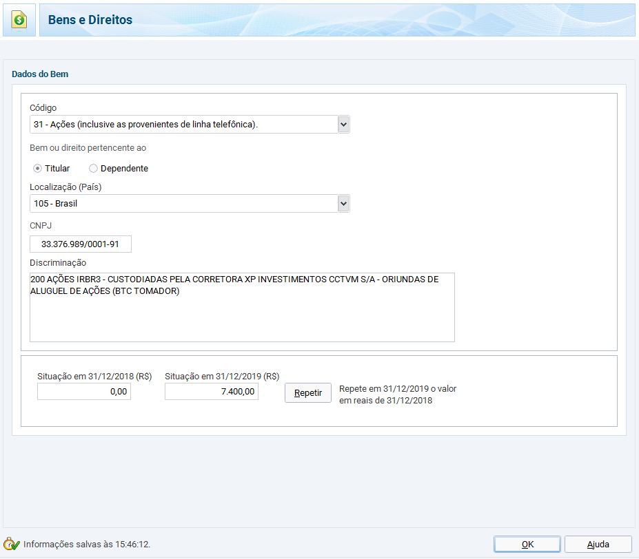 Na Declaração Anual de IR, deve ser declarado basicamente tudo, os mesmos tipos de informação para os investimentos nacionais. Todos os dados preenchidos nos programas GCAP e Carnê Leão podem ser importados pelo programa de Declaração Anual IRPF. Além das informações mencionadas até agora, outras que devem ser declaradas são as ações em custódia e saldo em conta na corretora. Para as declarações das ações em custódia em Bens e Direitos, deve ser considerado o preço pago em reais, usando a cotação do dólar no site do Banco Central do dia da compra.