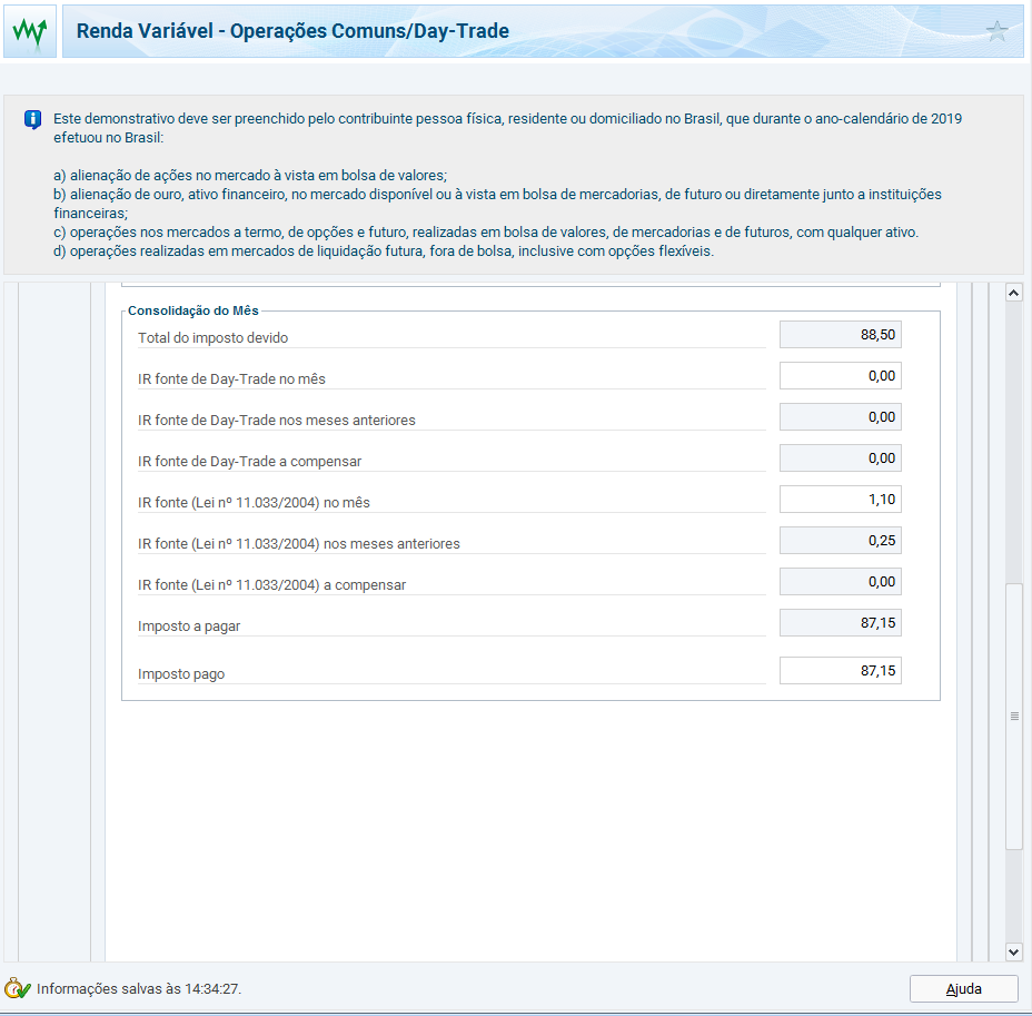 Para ganhos de capital no mês onde o total de vendas ultrapassar os R$ 35 mil, o lucro deve ser preenchido no programa GCAP (Ganhos de Capital) da Receita Federal. Aqui tem um ponto bem confuso que eu vi divergências em matérias e vídeos que pesquisei, que deve ser preenchido se os rendimentos auferidos foram em reais, em moeda estrangeira ou misto. Precisarei pesquisar mais a respeito sobre isso quando for declarar. Após fazer o preenchimento do mês, deverá de impresso o DARF para pagamento.
