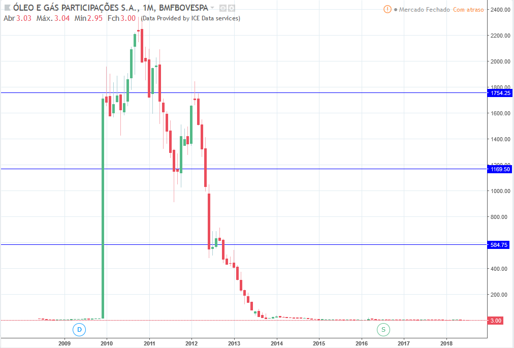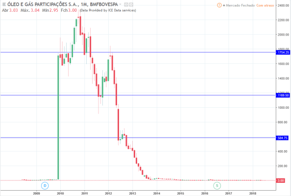 O topo da OGXP3 foi em 10/2010 a R$2339,00. O valor atual é de R$3,00.