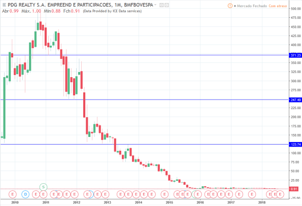 O topo da PDGR3 foi em 11/2010 a R$494,98. O valor atual é de R$0,91.