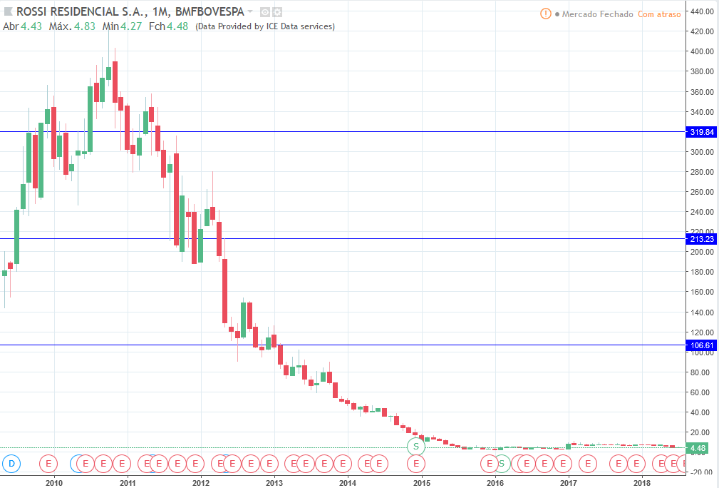 O topo da RSID3 foi em 10/2010 a R$426,46. O valor atual é de R$4,48.