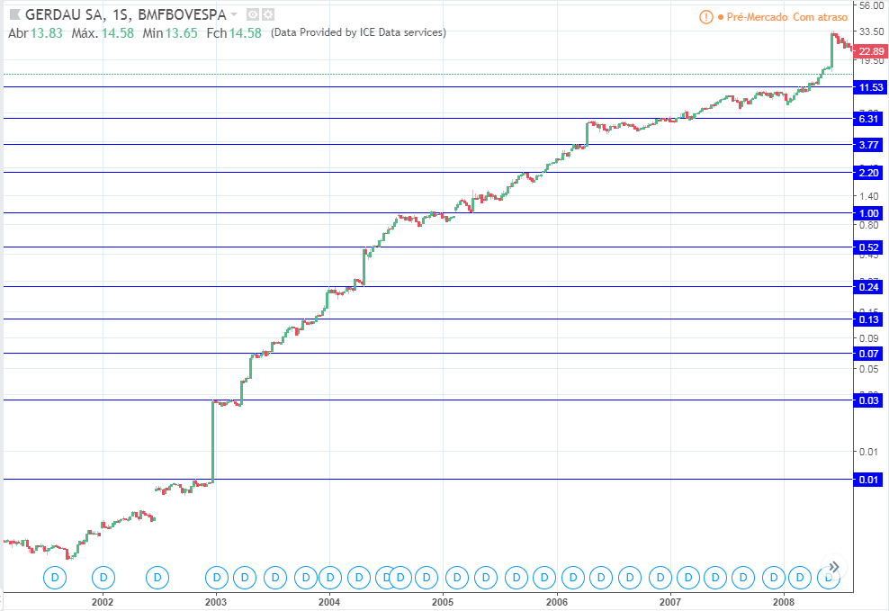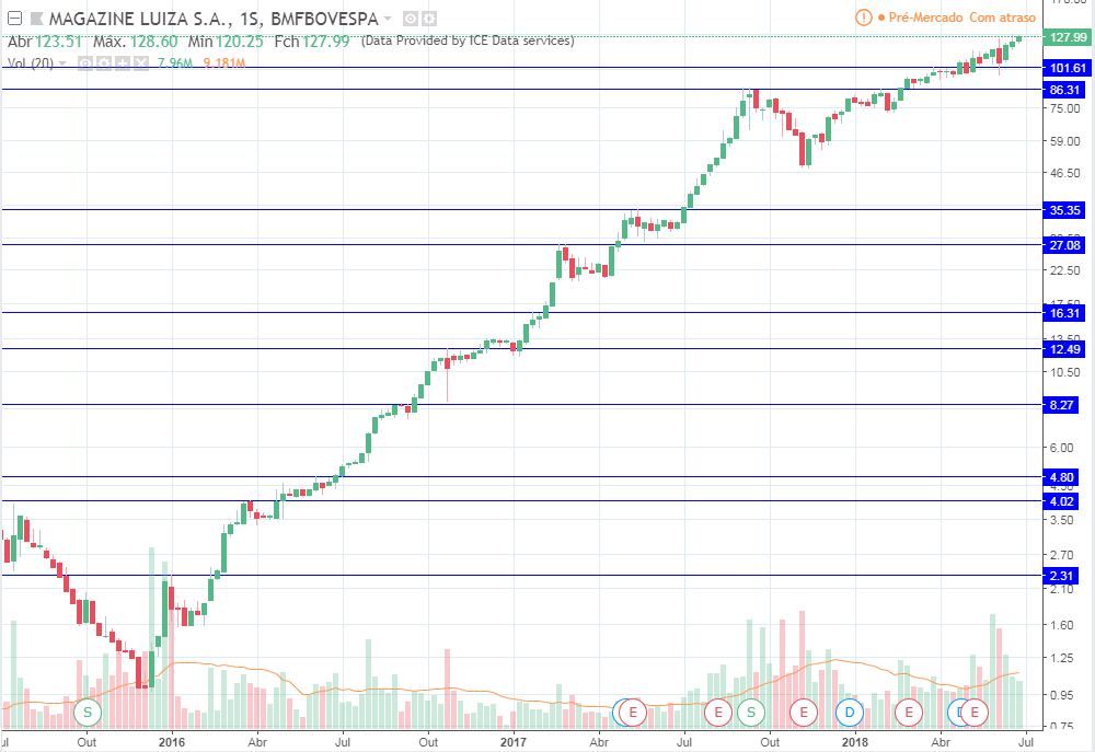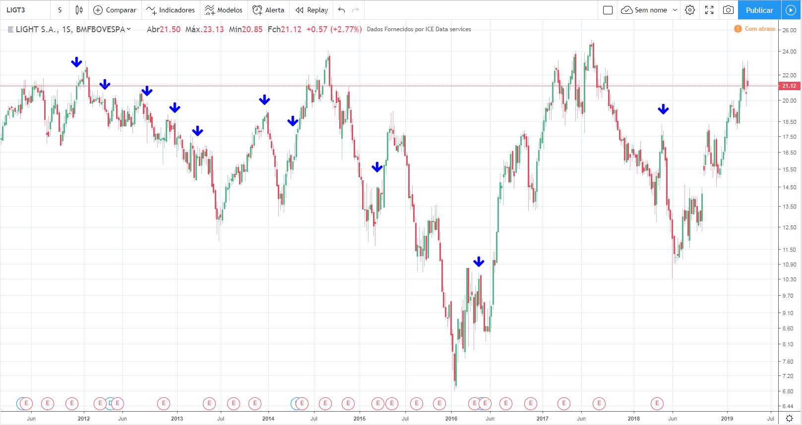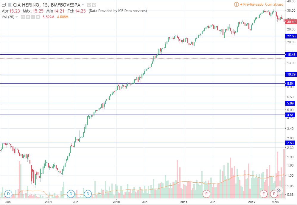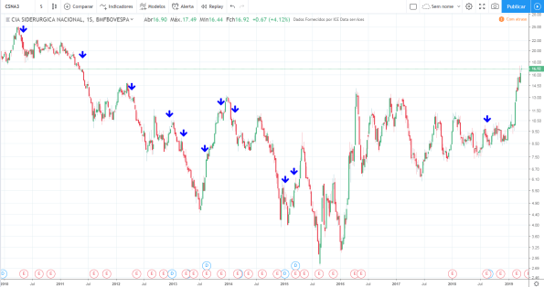 Ou seja, essa foi uma típica ação que comprando na queda teria resultado em desastre total. Conheço algumas pessoas que fizeram isso, compraram sem stop, hoje praticamente perderam tudo o investido.