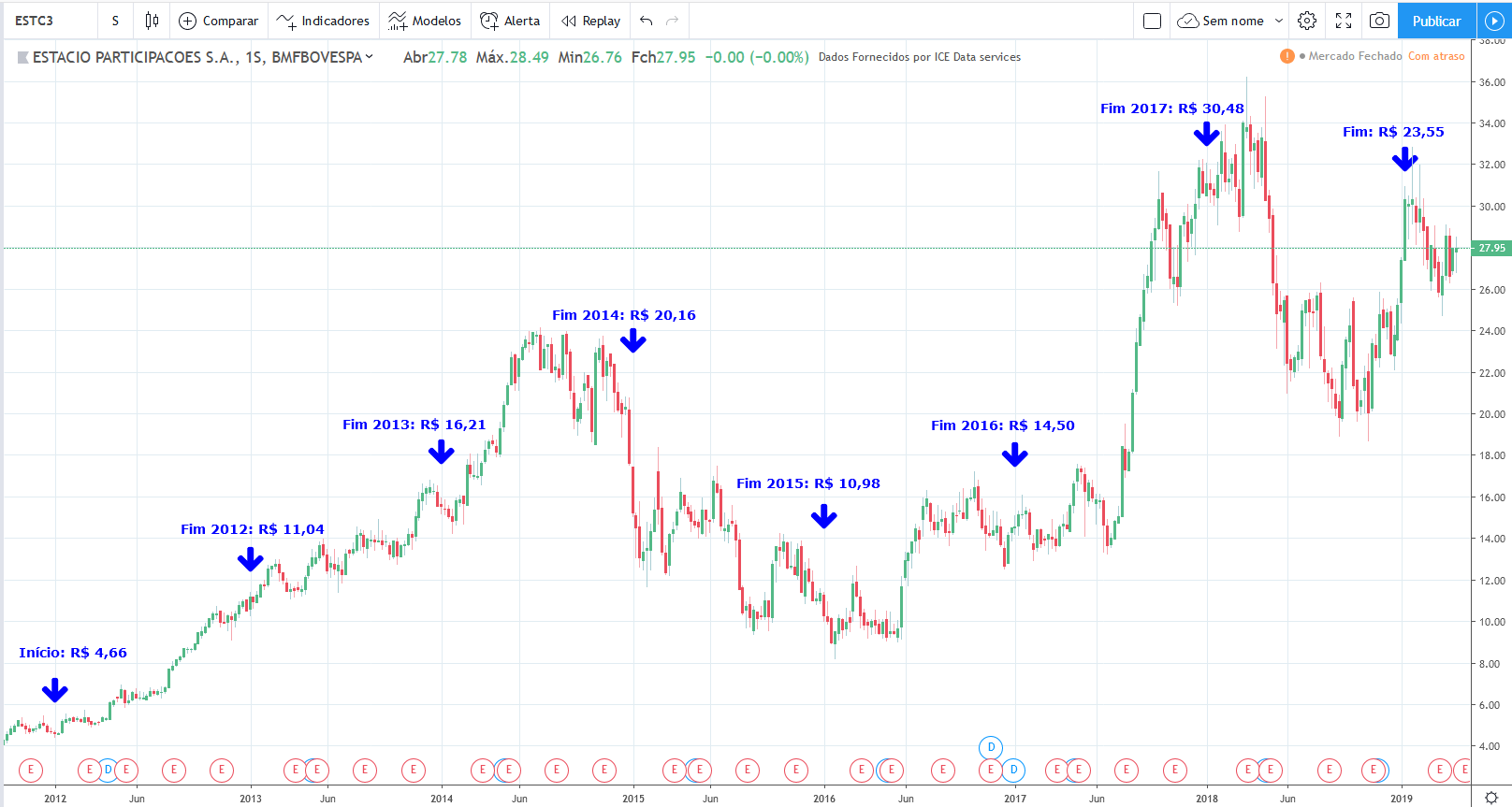 Compra a 8,54, rentabilidade 253%.