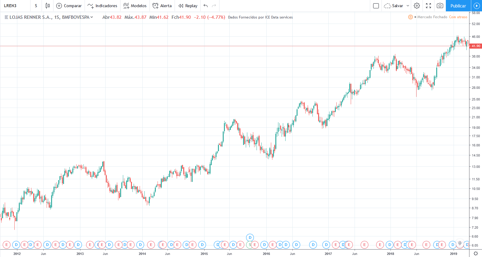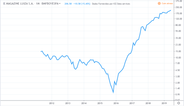 Compra a 4,89, rentabilidade 699%.