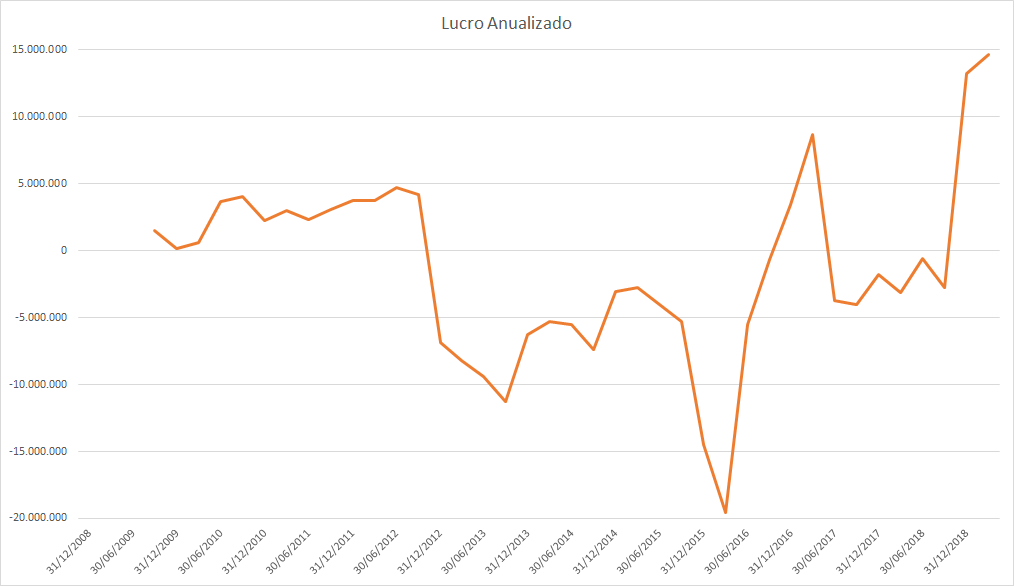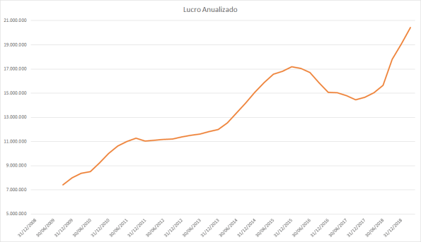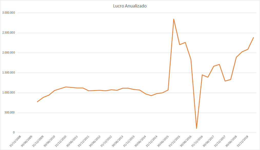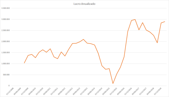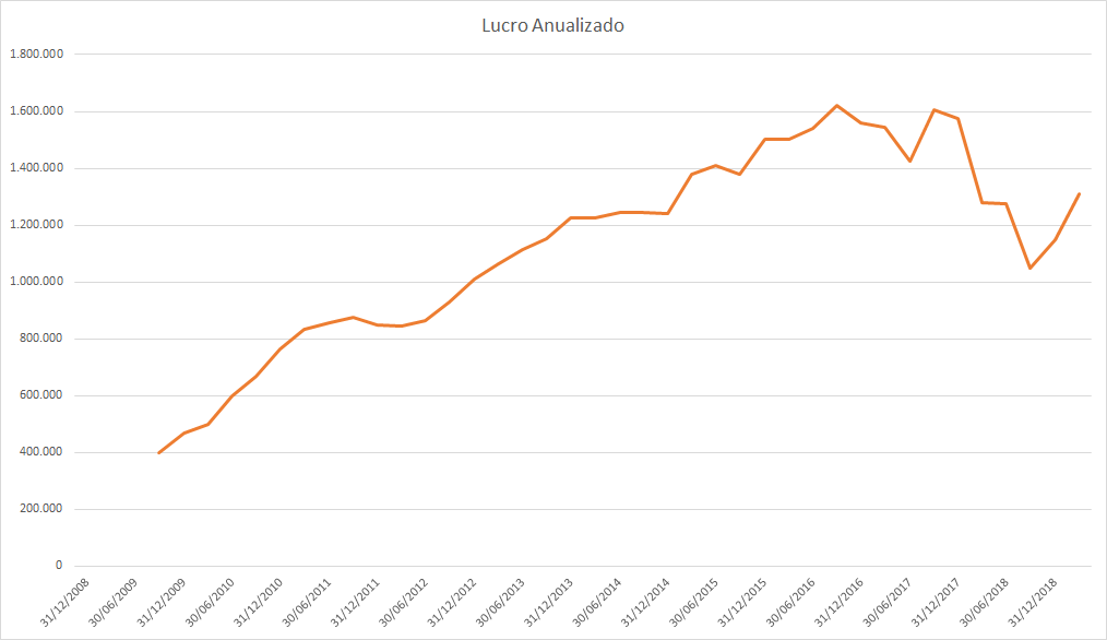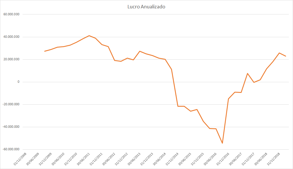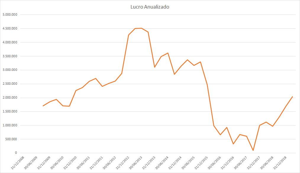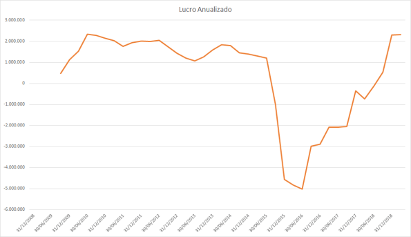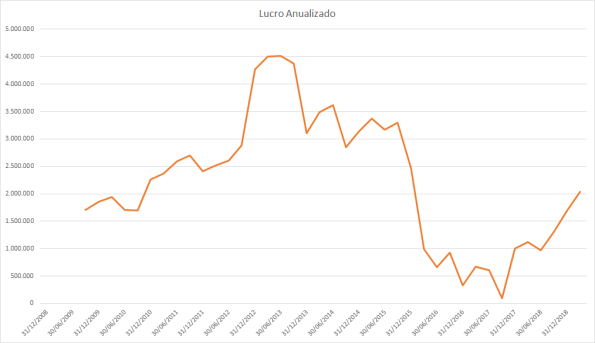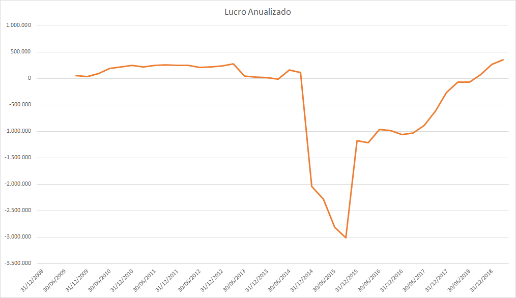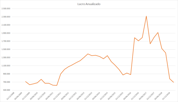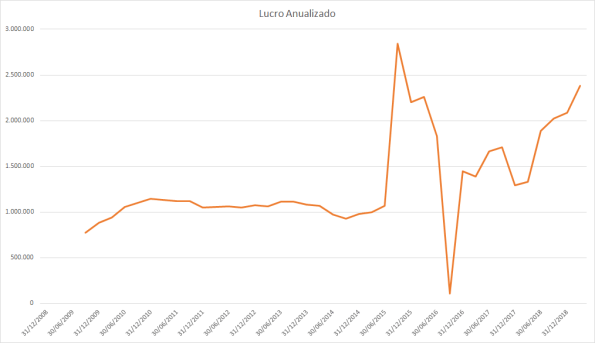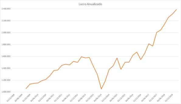 O lucro basicamente só cresceu desde 2015 porém o preço caiu absurdamente entre 2017 e 2018.