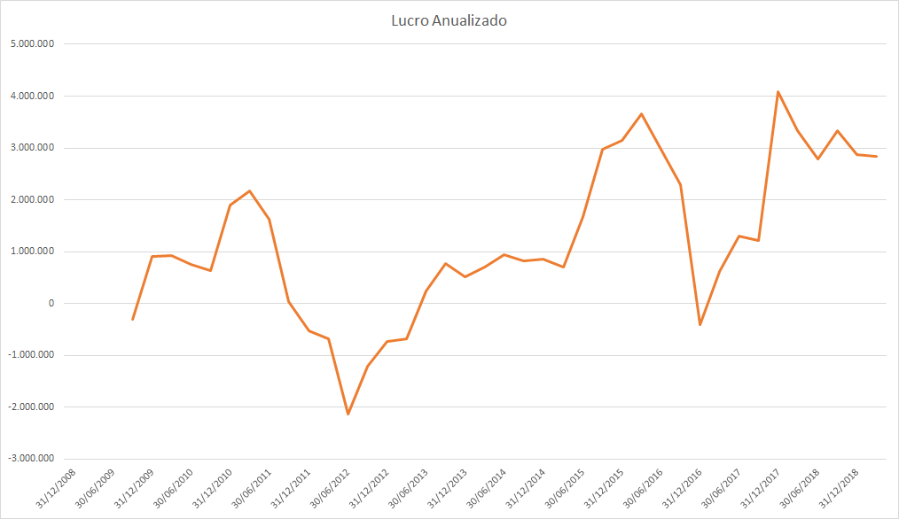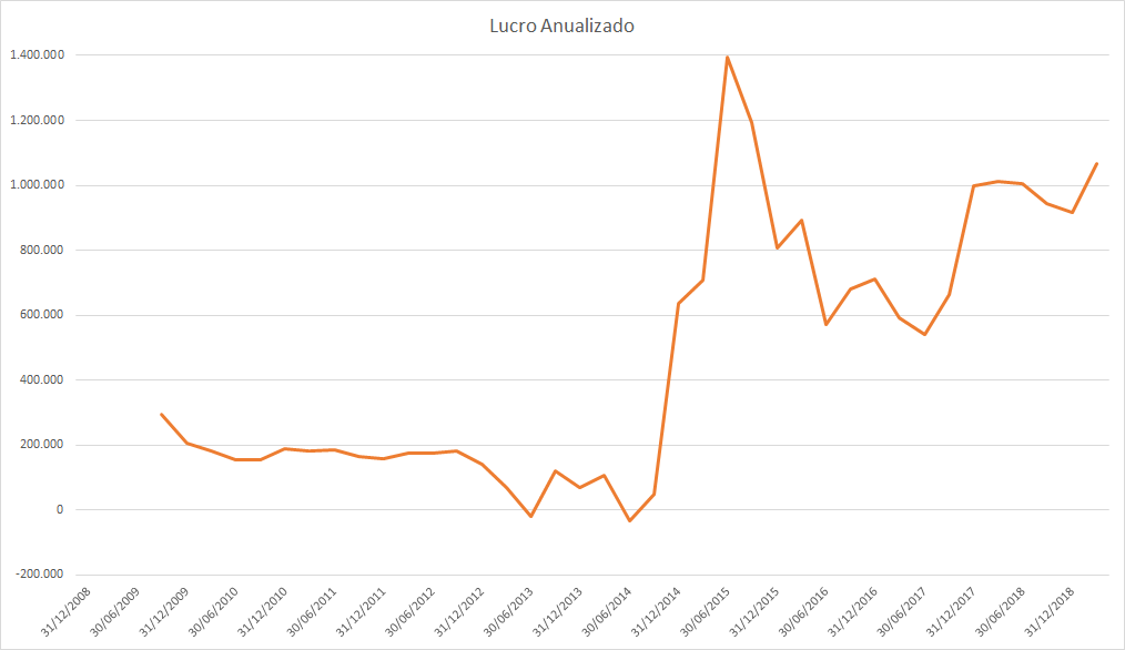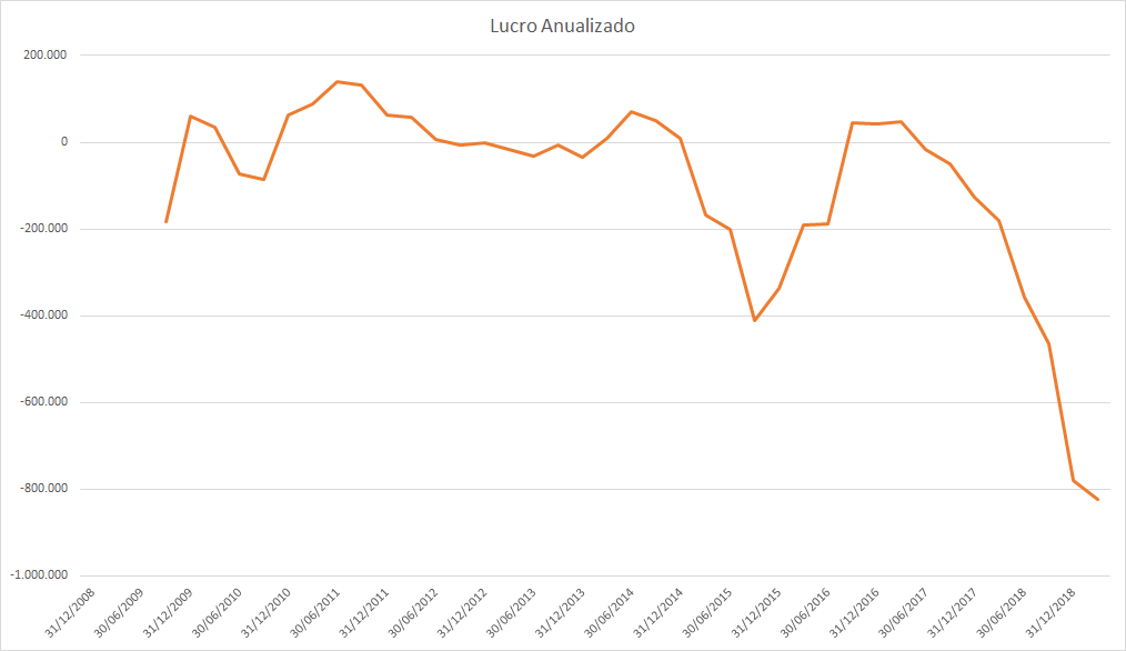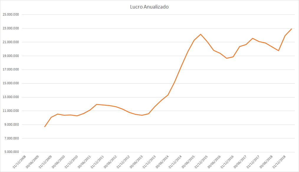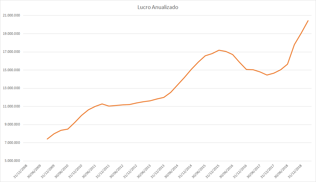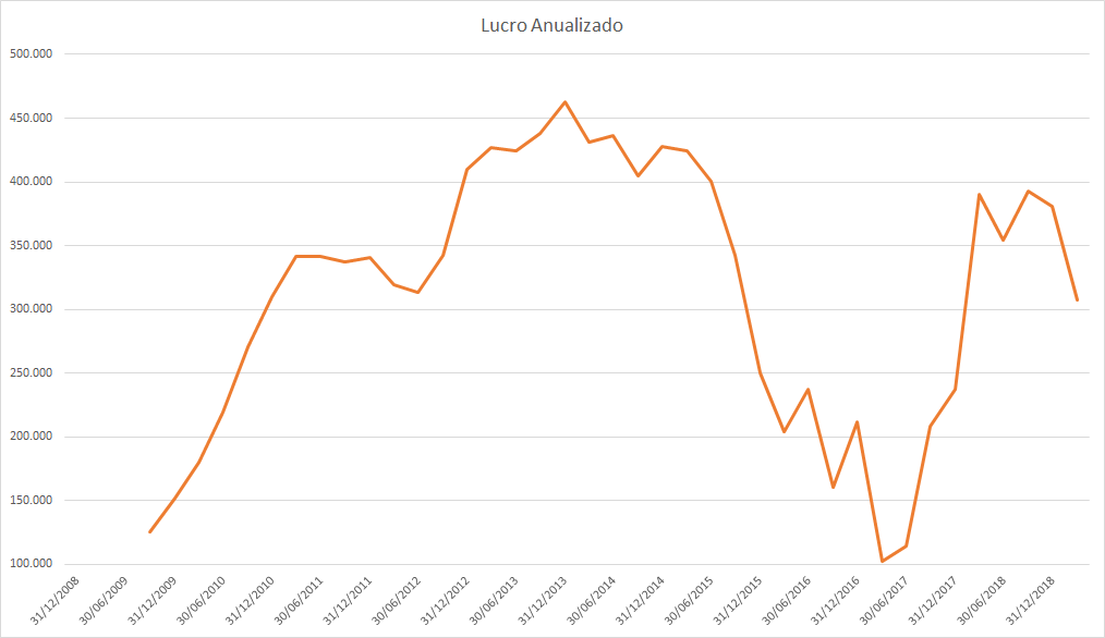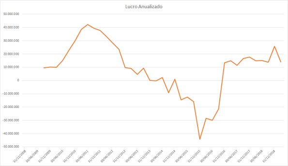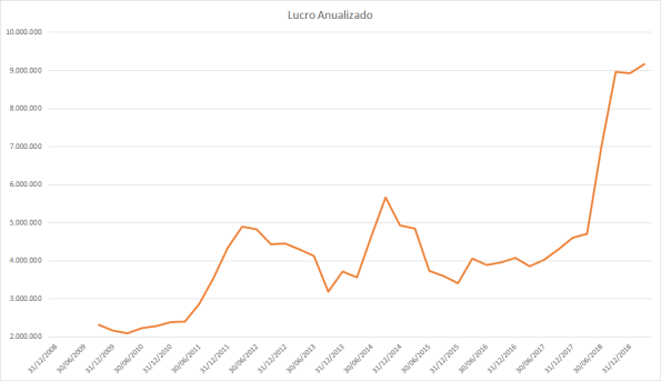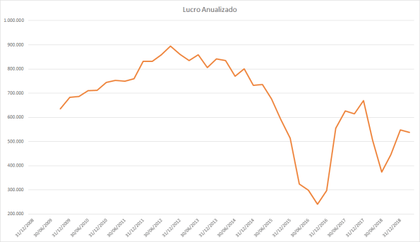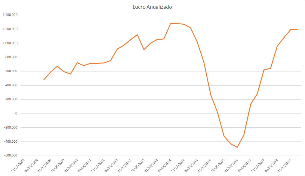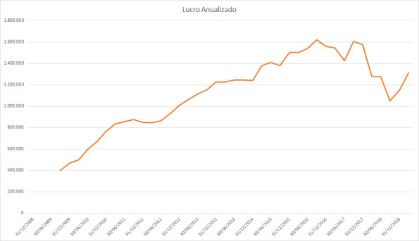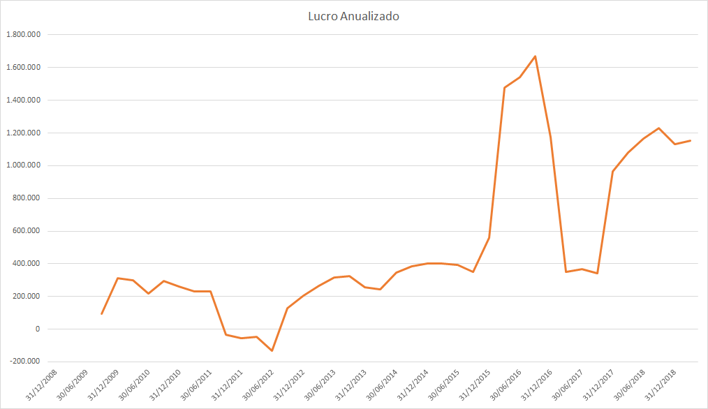 O lucro basicamente só cresceu desde 2015 porém o preço caiu absurdamente entre 2017 e 2018.