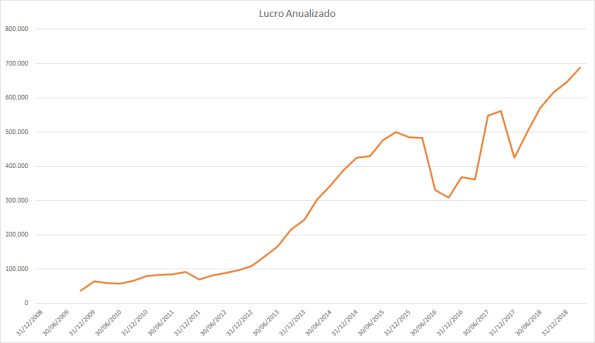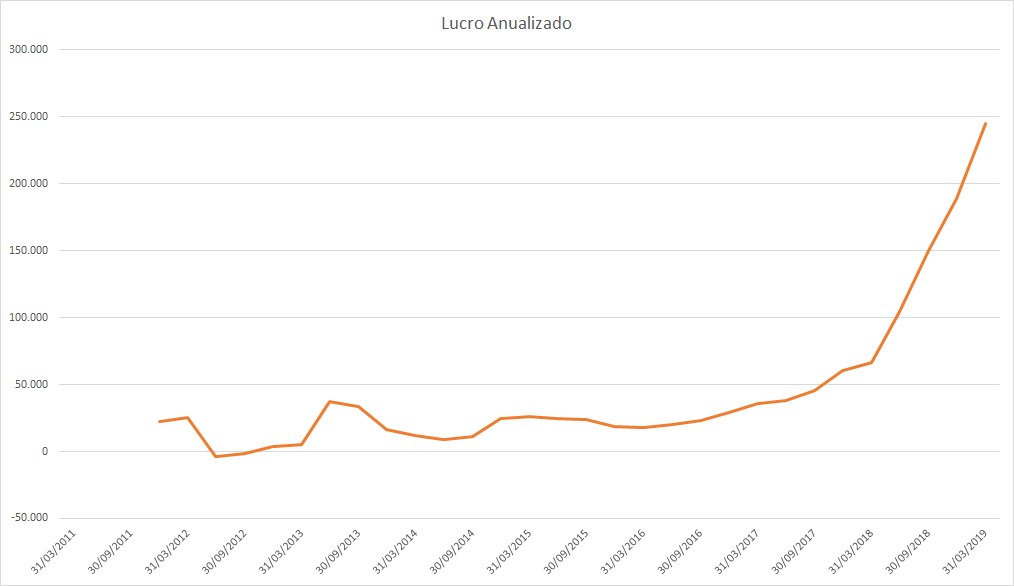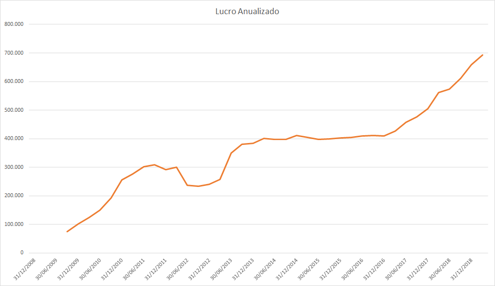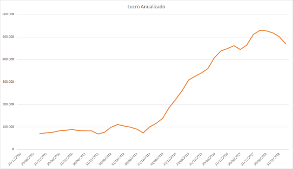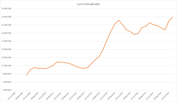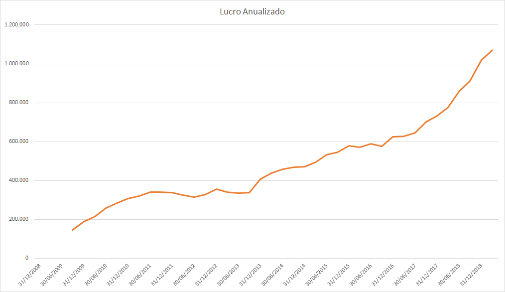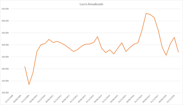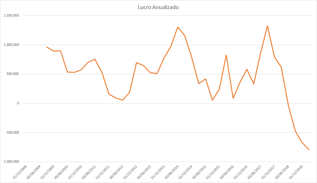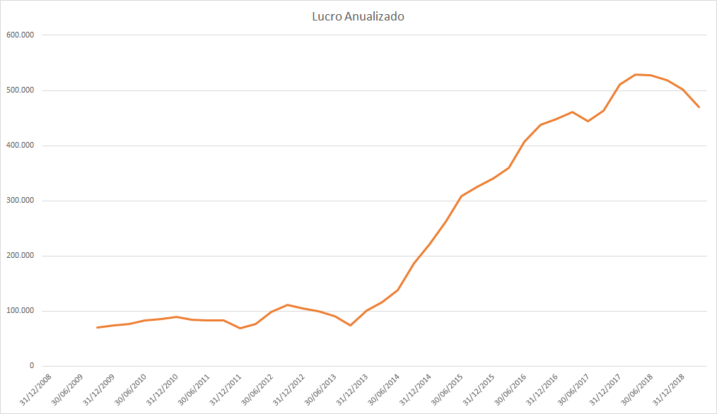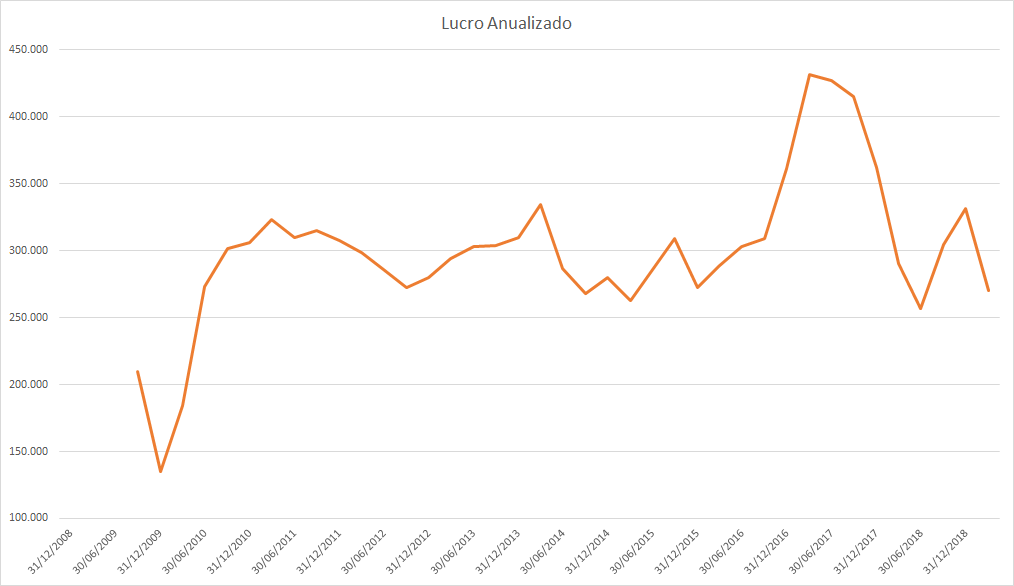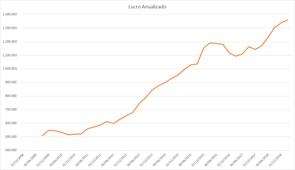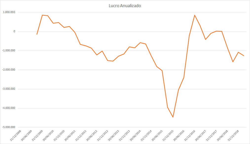 O lucro basicamente só cresceu desde 2015 porém o preço caiu absurdamente entre 2017 e 2018.