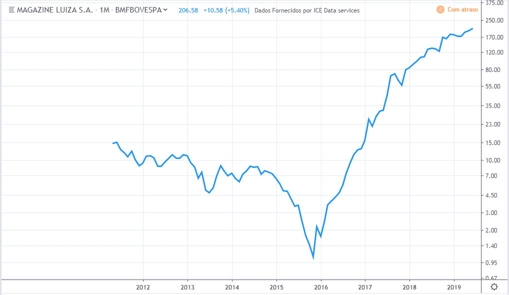 Compra a 5,69, rentabilidade 430%.